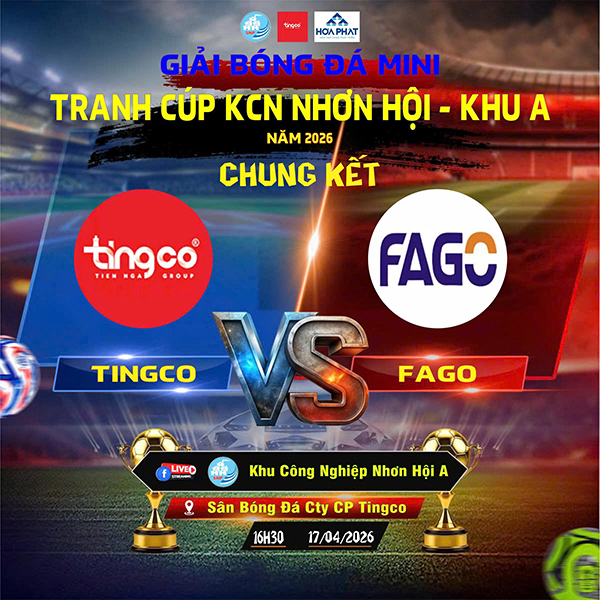 Ngày 17/04/2026, đội tuyển bóng đá Công ty TNHH TACN Fago Bình Định đã xuất sắc giành chức vô địch tại Giải bóng đá mini tranh Cúp KCN Nhơn Hội – Khu A 2026!